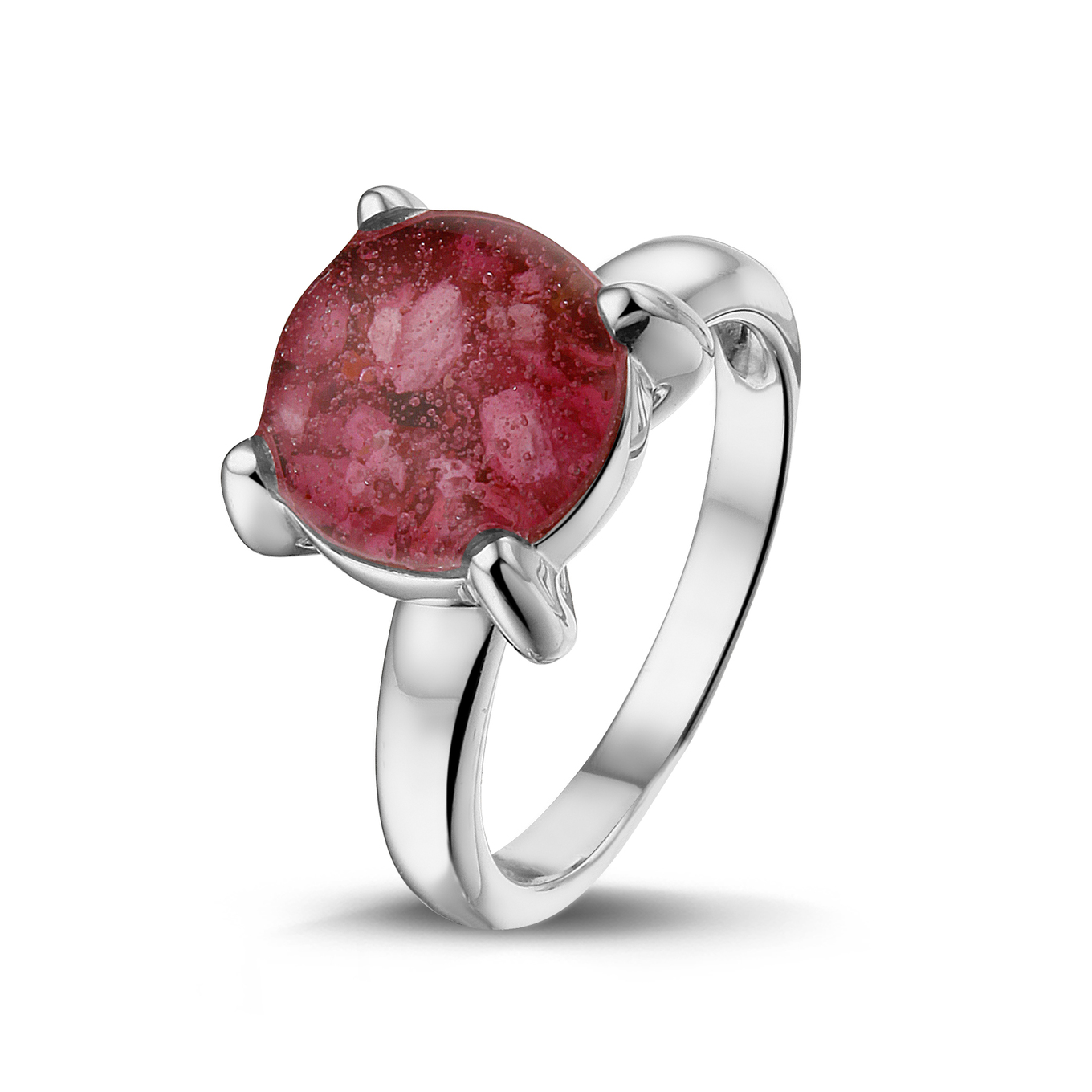 Zilveren ring. Dit sieraad wordt zichtbaar aan de voorkant gevuld met as en wordt vermengd met speciale hars. U kunt dit niet zelf vullen, wij doen dit graag voor u.
