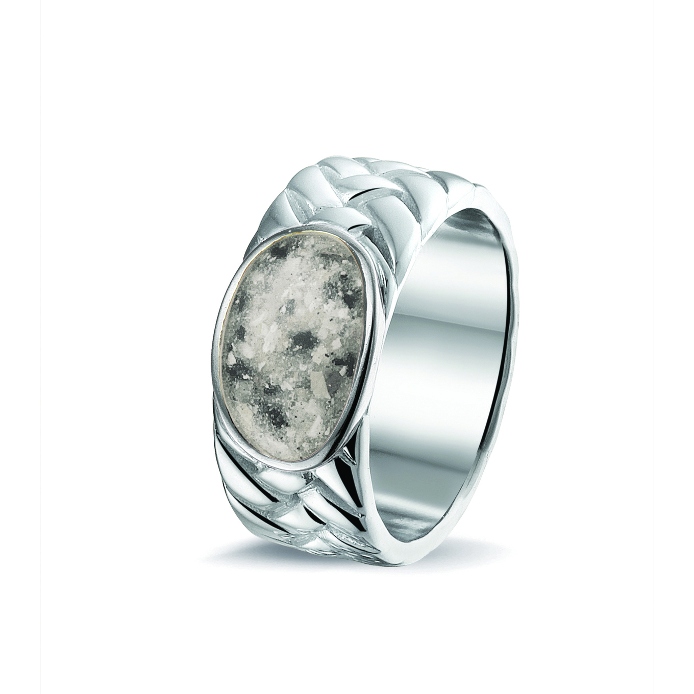 Zilveren herenring. Dit sieraad wordt zichtbaar aan de bovenkant gevuld met as en wordt vermengd met speciale hars. U kunt dit niet zelf vullen, wij doen dit graag voor of met u.