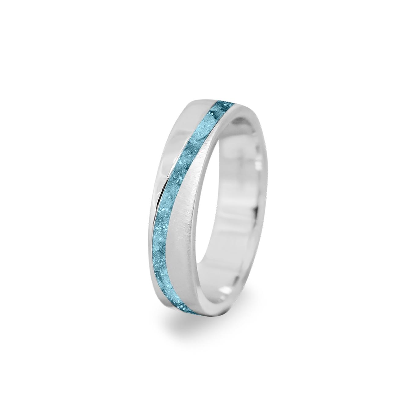 Zilveren ring. Dit sieraad wordt rondom gevuld met as en wordt vermengd met speciale hars. Dit kan door ons gedaan worden.