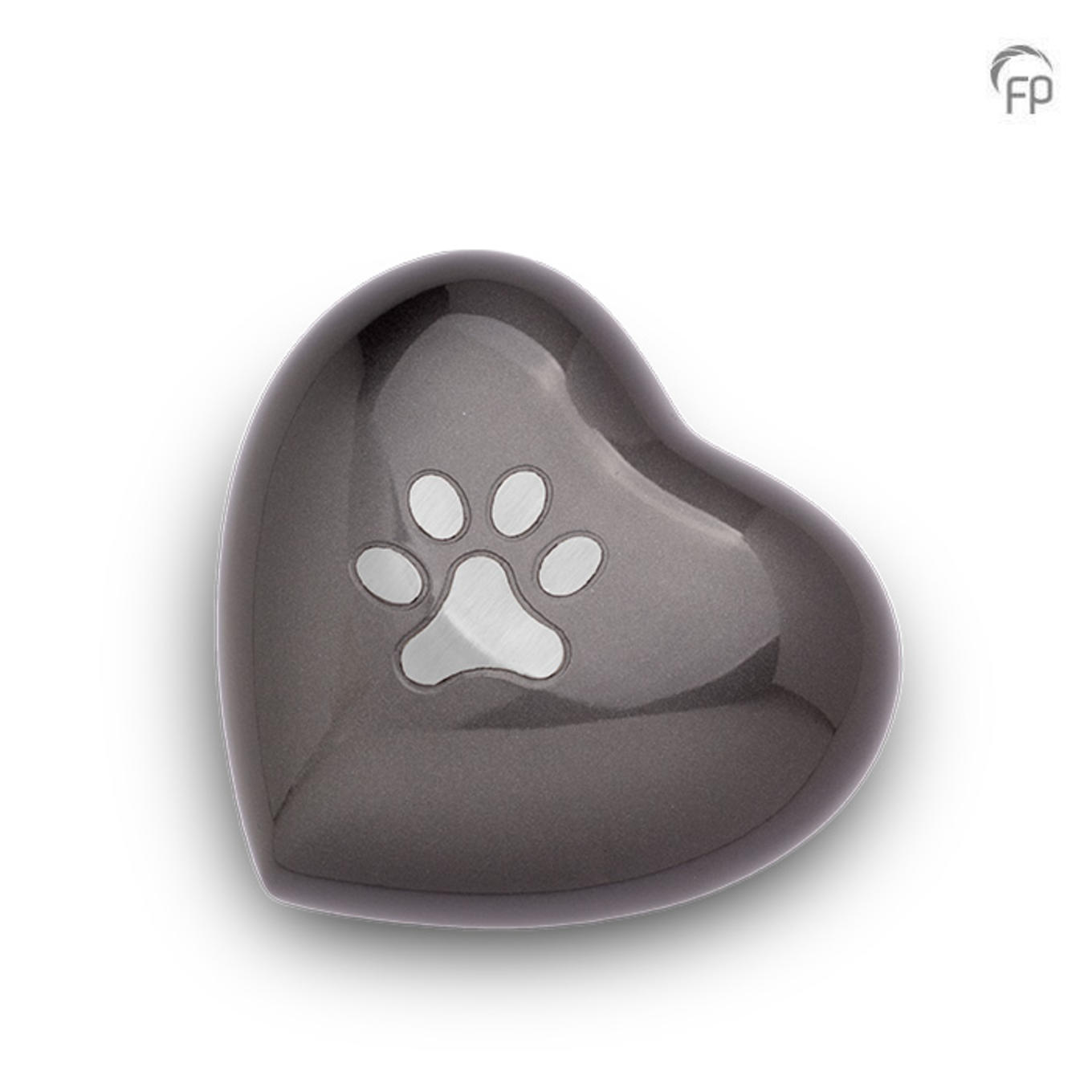 Metaal hart dierenurn met pootafdruk grijs/zilverkleur medium
