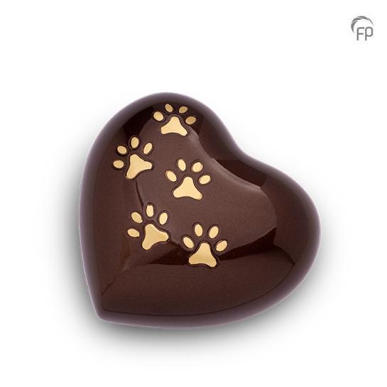 Metaal hart dierenurn met pootafdruk grijs/zilverkleur klein