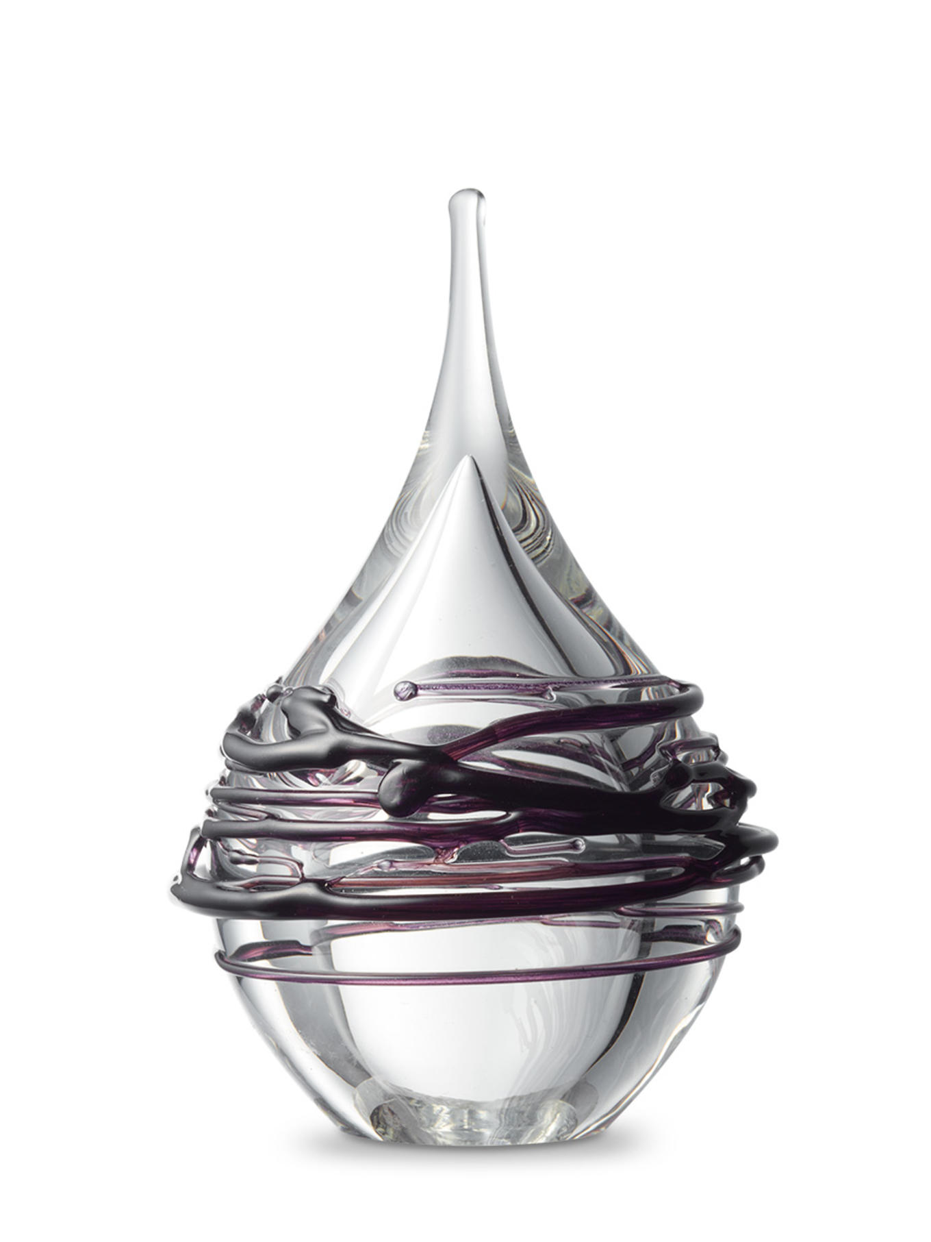 De mini-urn heeft de vorm van een kleine sierlijke druppel.